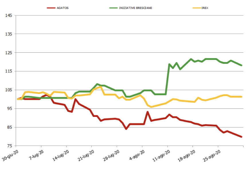 Continua il trend negativo di Agatos (-20,1%), che non riesce a recuperare dopo il -6,9% registrato nel mese di giugno. Innovatec è in flessione nel bimestre (-14,5%), nonostante numerose operazioni concluse nei due mesi. La società ha ricevuto quattro commesse per un totale di 10,1 milioni di euro per l’efficientamento energetico di diversi siti produttivi. In calo anche Ecosuntek (-12,9%), Alerion (-12,8%), Frendy Energy (-2,1%), EEMS (-9,8%) e Algowatt (-8,1%) mentre resta quasi invariata Enertronica (-0,8%).