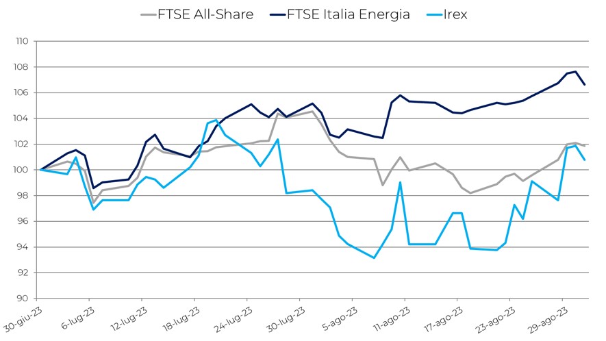 Il FTSE Italia Energia balza a quota 17.241,9 con un rialzo del 6,7% rispetto a giugno, sospinto dalle buone performance sui mercati delle commodities. Notevoli le quotazioni petrolifere. Il Brent è salito del 15,9% a 86,80 dollari al barile mentre il marker WTI registra una crescita del 18,5%, arrivando a 83,55 dollari. Entrambi gli indici sono ai loro massimi da ottobre 2022.